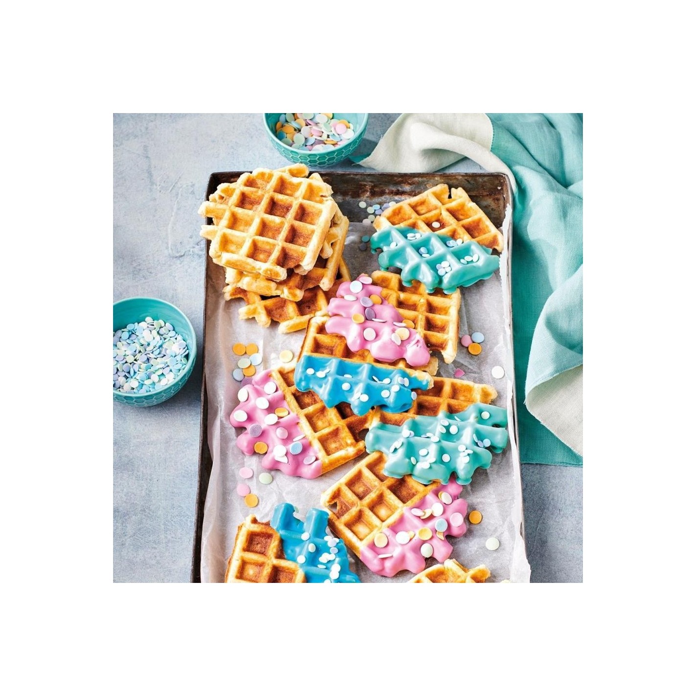 Añade a esta mezcla mantequilla, agua, huevo y, potencialmente, el azúcar perlado de FunCakes y disfruta de esos deliciosos y robustos gofres.